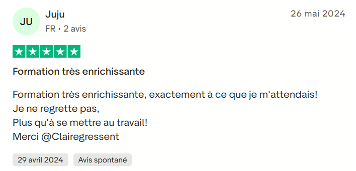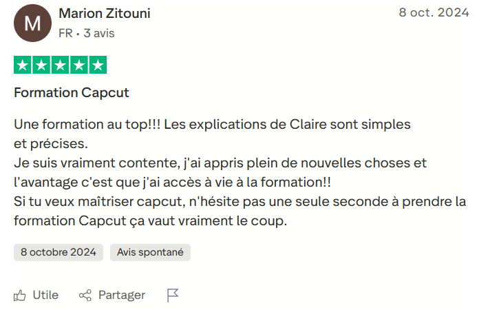 Claire est très simple dans ses explications, grâce à son aide j'ai compris comment faire les montages et j'ai obtenu des collaborations UGC rapidement !